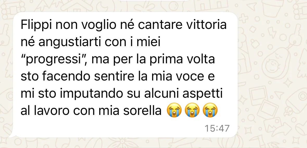 Con lei sto facendo un viaggio bellissimo, dentro e fuori. Grazie a lei ho acquisito nozioni e compreso di avere dentro di me degli strumenti fortissimi, questo suo percorso è un vero e proprio regalo della vita. Non so se bisogna essere pronti per affrontarlo, non so se ci si riesce anche quando va tutto bene, so solo che avrei tanto voluto averlo scoperto prima, per migliorare me stessa e la mia vita. Ma non è mai troppo tardi, e sopratutto oggi è il momento giusto per farlo.”